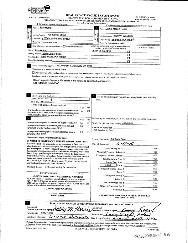 | 4 | 06/11/2015 | QCD | QUIT CLAIM DEED | HARRIS SALLY LIFE ESTATE | HARRIS SALLY LIFE ESTATE | | | | 128166 | 2015-04977 |