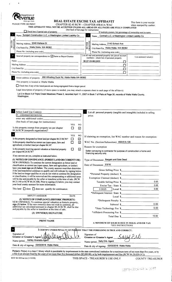| 5 | 10/17/2012 | WARRANTY D | WARRANTY DEED | MINNICK-HAYNER PS | CONTRAIL LLC | | | $71,546.00 | 122810 | 2012-09124 |