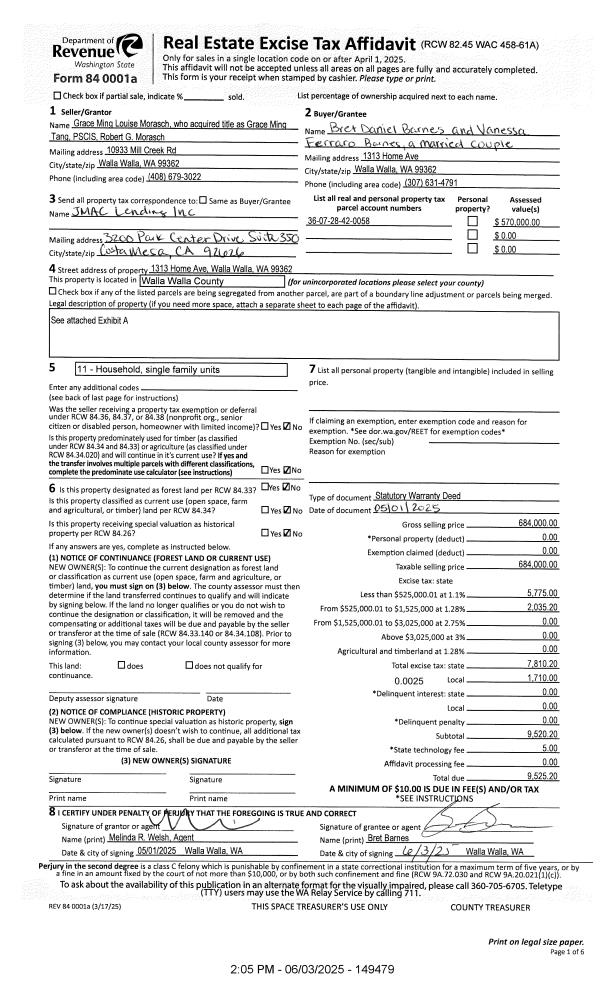 | 1 | 06/03/2025 | SWD | STATUTORY WARRANTY DEED | TANG MING | BARNES BRET DANIEL & VANESSA FERRARO | | | $684,000.00 | 149479 | 2025-03109 |