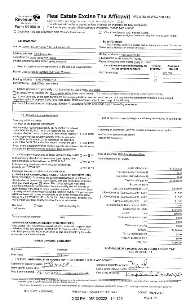 | 2 | 06/13/2022 | SWD | STATUTORY WARRANTY DEED | EK LANCE M & NATASIA A | SANCHEZ JOSE A ROBLES | | | $360,000.00 | 144129 | 2022-05003 |