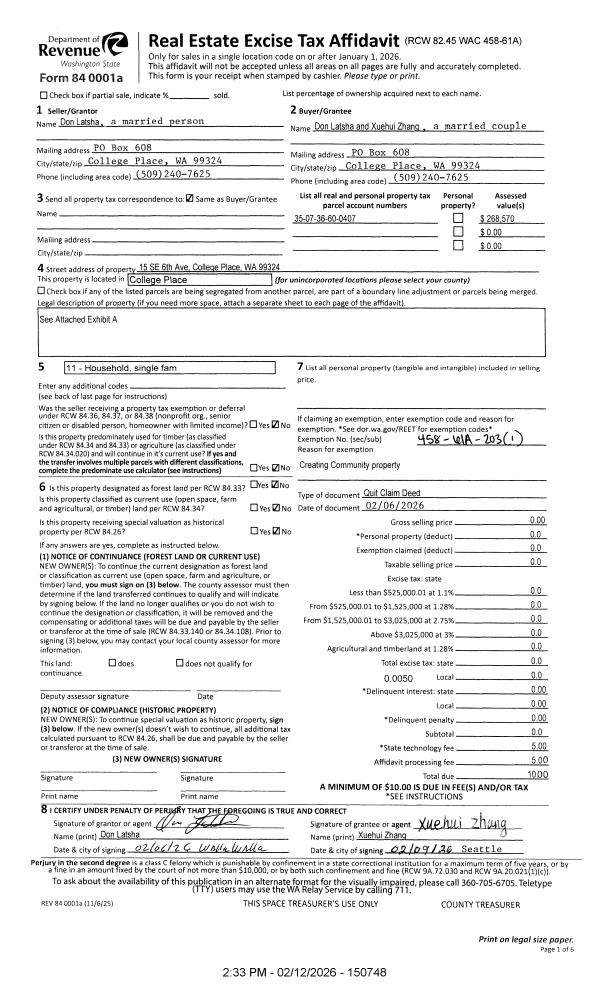 | Mailing Address: | PO BOX 608 COLLEGE PLACE, WA 99324 | % Ownership: | 100.0000000000% |