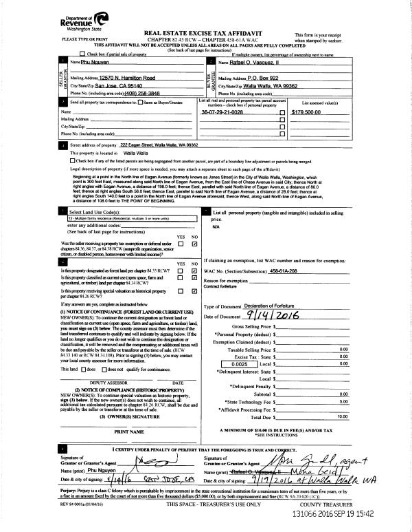 | 3 | 09/14/2016 | DFL | DEED IN LIEU OF FORECLOSURE | NGUYEN PHU | TETZ EVERETT D | | | | 131080 | 2016-07720 |