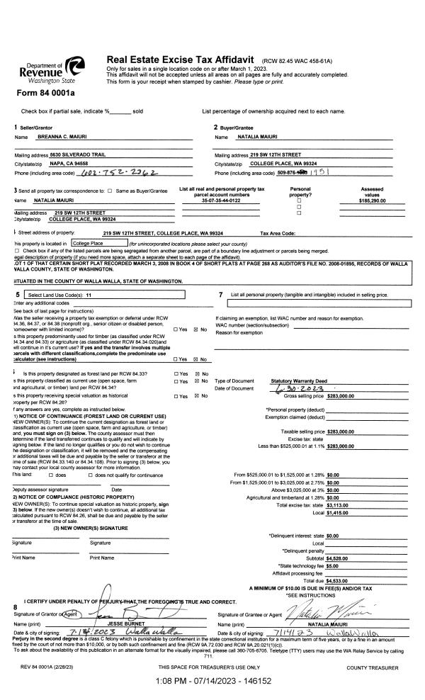 | 1 | 07/14/2023 | SWD | STATUTORY WARRANTY DEED | MAIURI BREANNA C | MAIURI NATALIA | | | $283,000.00 | 146152 | 2023-03986 |