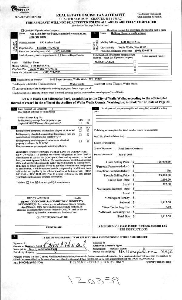 | 4 | 07/06/2011 | WARRANTY D | WARRANTY DEED | STEVENS, KAY LYNN-PUGH | SLOAN, HOLIDAY | | | $125,000.00 | 120359 | 2011-05140 |