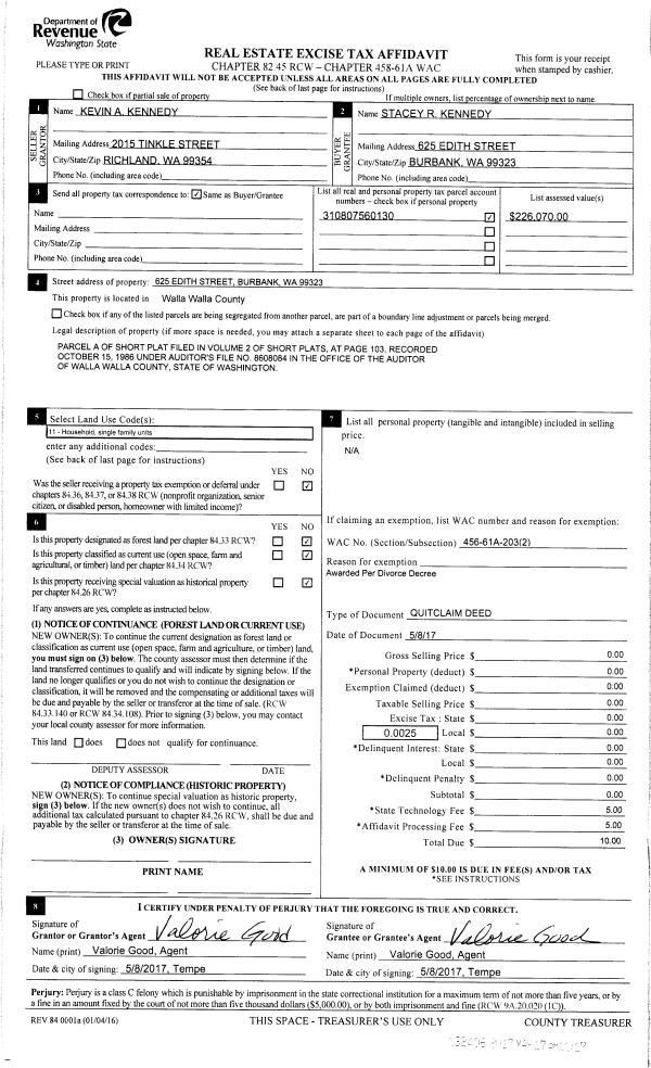 | 1 | 05/08/2017 | QCD | QUIT CLAIM DEED | KENNEDY KEVIN A & STACEY R | KENNEDY STACEY R | | | $0.00 | 132406 | 2017-03732 |