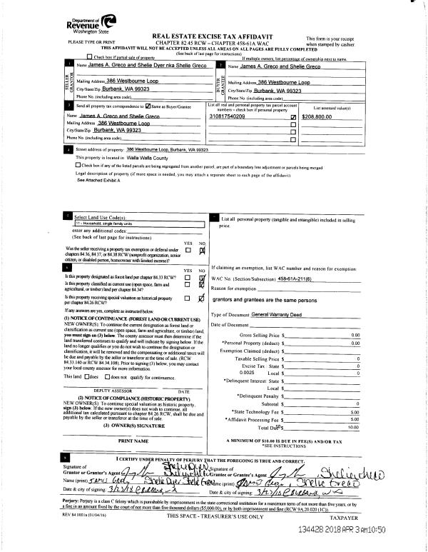| 1 | 04/03/2018 | WARRANTY D | WARRANTY DEED | GRECO JAMES A | GRECO JAMES A & SHELIE | | | $0.00 | 134428 | 2018-02558 |
