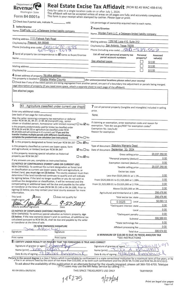 | 4 | 12/21/2018 | BARGAIN & | BARGAIN & SALE DEED | FIRSTFRUITS LAND LLC | FIRSTFRUITS FARMS LLC | | | $288,164,242.00 | 136189 | 2018-10760 |