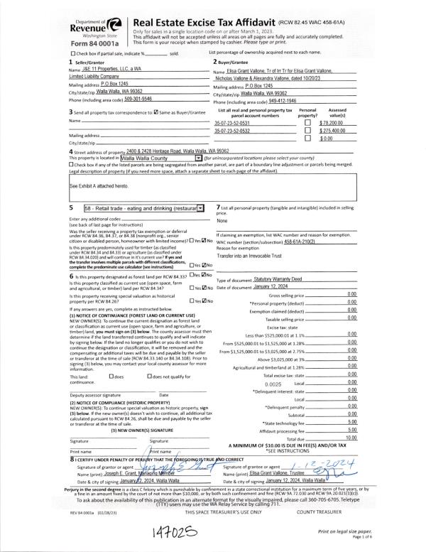 | Mailing Address: | PO BOX 1245 WALLA WALLA, WA 99362 | % Ownership: | 100.0000000000% |