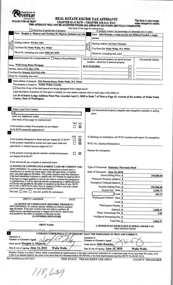 | 4 | 06/18/2010 | WARRANTY D | WARRANTY DEED | MAJERUS, DOUGLAS | RUZICKA, JULIE | | | $199,900.00 | 118639 | 2010-04719 |