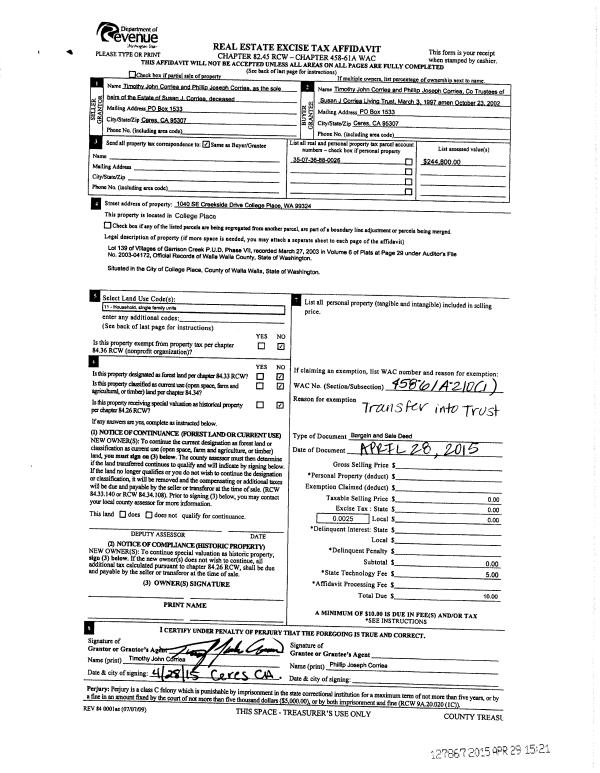 | 4 | 04/29/2015 | BARGAIN & | BARGAIN & SALE DEED | | CORRIEA SUSAN J LIVING TRUST | | | | 127867 | 2015-03573 |