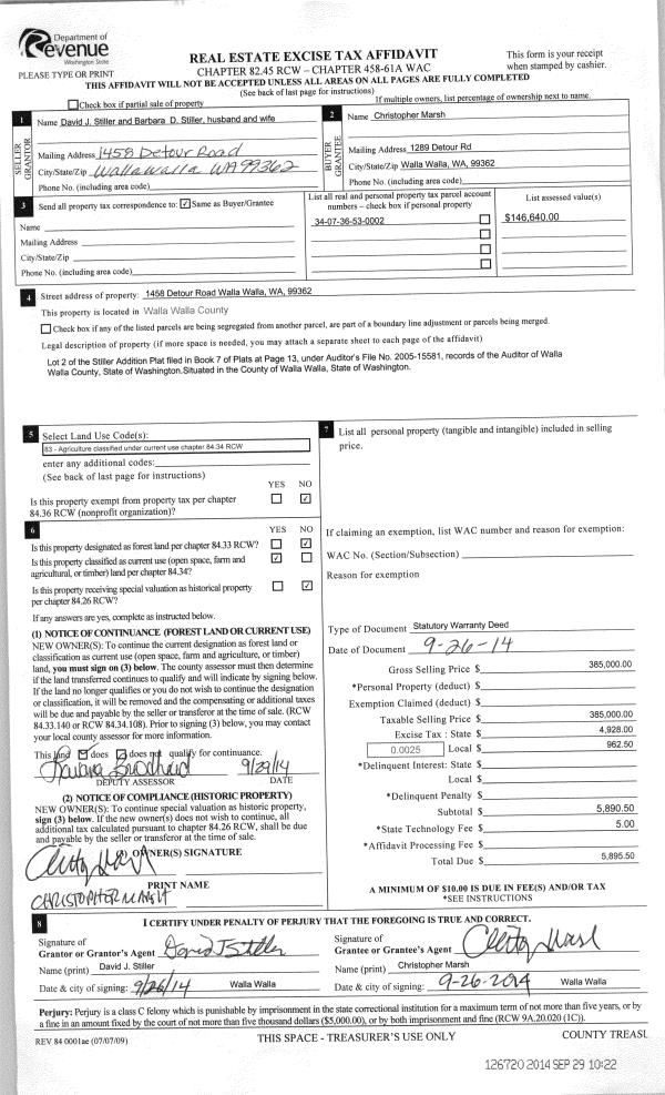 | 1 | 09/26/2014 | SWD | STATUTORY WARRANTY DEED | STILLER DAVID J | MARSH CHRISTOPHER | | | $385,000.00 | 126720 | 2014-07097 |