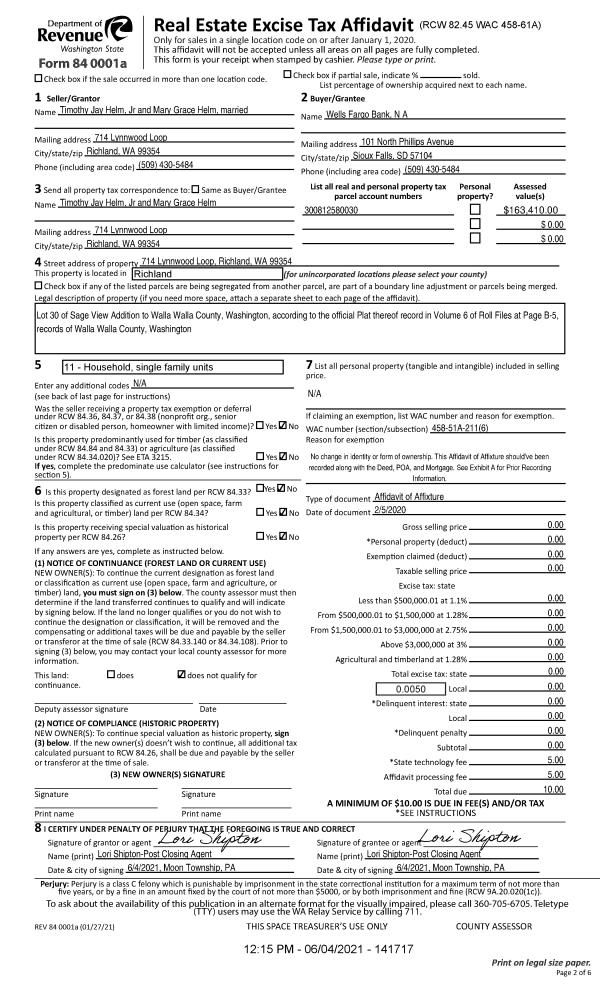 | 2 | 02/05/2020 | AFFIDAVIT | AFFIDAVIT | HELM TIMOTHY JAY JR & MARY GRACE | HELM TIMOTHY JAY JR & MARY GRACE | | | $0.00 | 141717 | 2021-06809 |