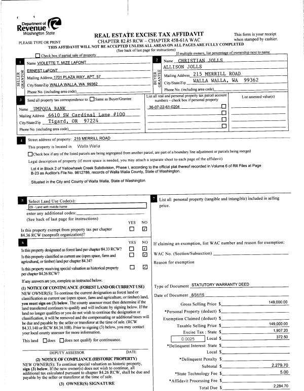 | Mailing Address: | 215 MERRILL RD WALLA WALLA, WA 99362 | % Ownership: | 100.0000000000% |