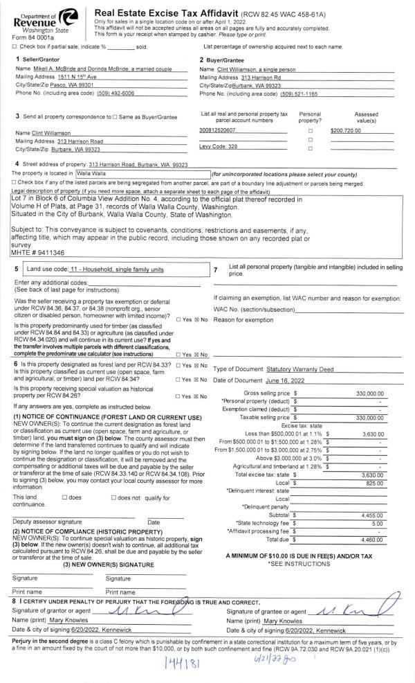 | 2 | 06/21/2022 | SWD | STATUTORY WARRANTY DEED | MC BRIDE MIKELL A | WILLIAMSON CLINT | | | $330,000.00 | 144181 | 2022-05225 |