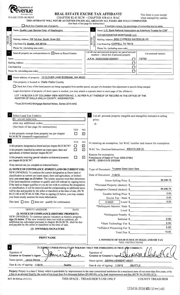 | 2 | 11/10/2016 | TRUSTEES D | TRUSTEE'S DEED | GREGORY DELMAR L & MARSHA R | US BANK NATIONAL ASSOCIATION | | | $86,496.00 | 131416 | 2016-09357 |