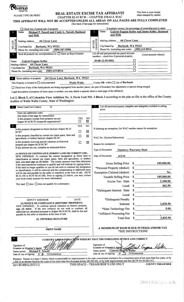 | 2 | 06/10/2014 | SWD | STATUTORY WARRANTY DEED | NEWELL MICHAEL P | KELLER GABRIEL EUGENE & JAIME | | | $185,000.00 | 126043 | 2014-03994 |