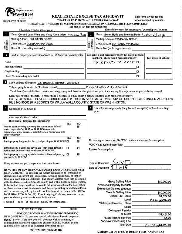 | 2 | 09/15/2015 | SWD | STATUTORY WARRANTY DEED | WISE CONARD L & VICKY | HYDE MICHEL & MELINDA | | | $80,000.00 | 128823 | 2015-08095 |