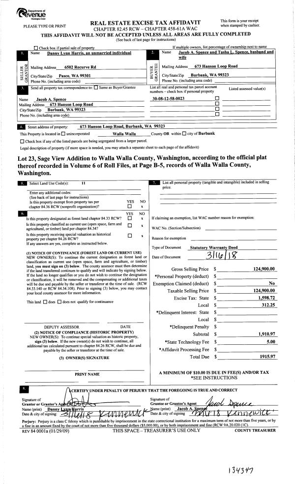 | 2 | 03/20/2018 | SWD | STATUTORY WARRANTY DEED | HARRIS DANNY LYNN | SPENCE JACOB A & TASHA L | | | $124,900.00 | 134347 | 2018-02164 |