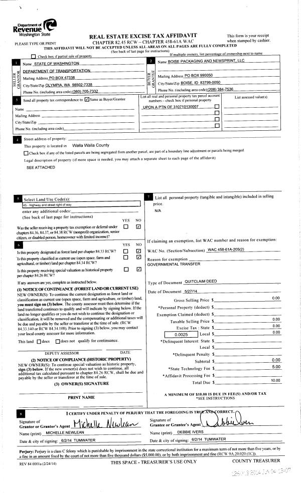 | 3 | 11/17/2005 | WARRANTY D | WARRANTY DEED | BOISE WHITE PAPER LLC | | | | | 109054 | 2005-14503 |