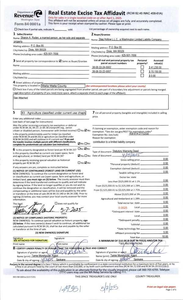 | 1 | 05/07/2025 | WARRANTY D | WARRANTY DEED | RYDEN SHARON A | STAG HOLLOW LLC | | | | 149351 | 2025-02515 |