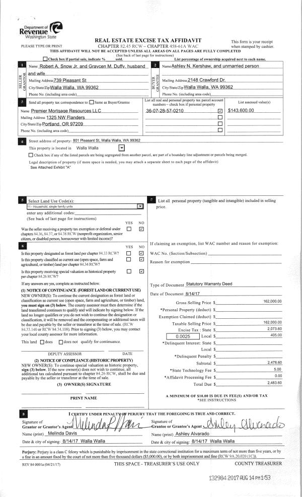 | Mailing Address: | 801 PLEASANT ST WALLA WALLA, WA 99362 | % Ownership: | 100.0000000000% |