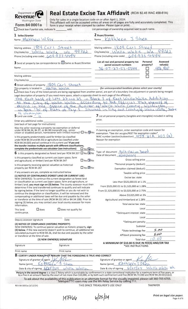 | Mailing Address: | KATHLEEN J SHEA 1809 CARL ST WALLA WALLA, WA 99362 | % Ownership: | 100.0000000000% |