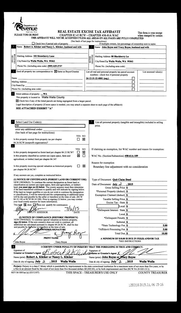 | Mailing Address: | 124 SHERIDAN RD WALLA WALLA, WA 99362 | % Ownership: | 100.0000000000% |