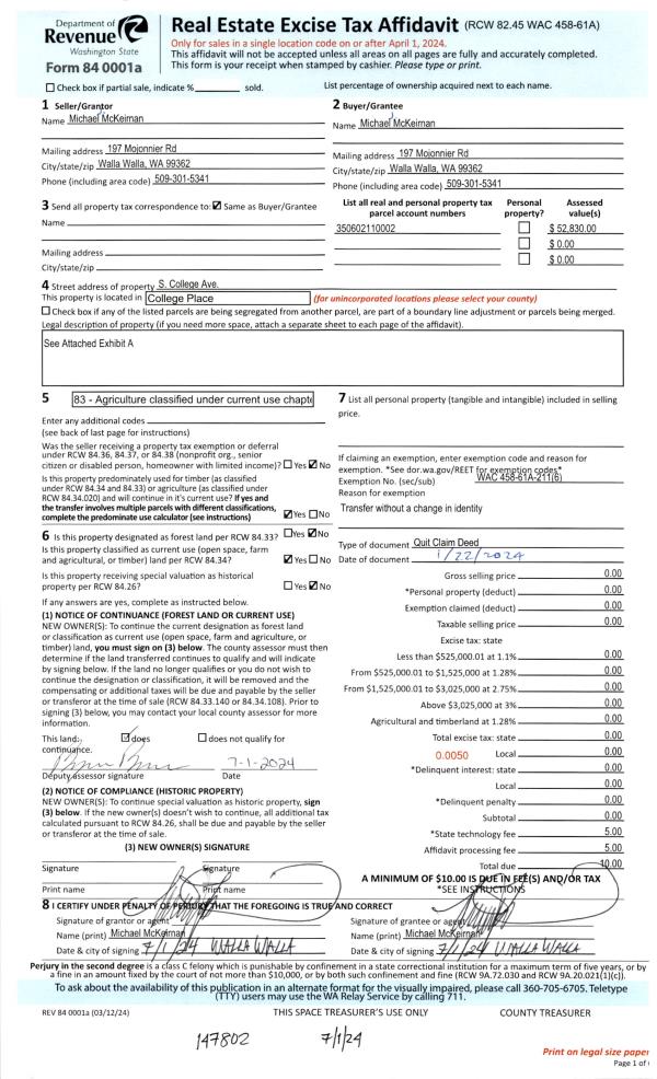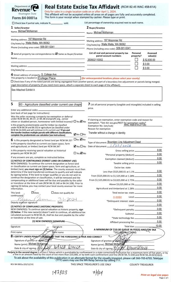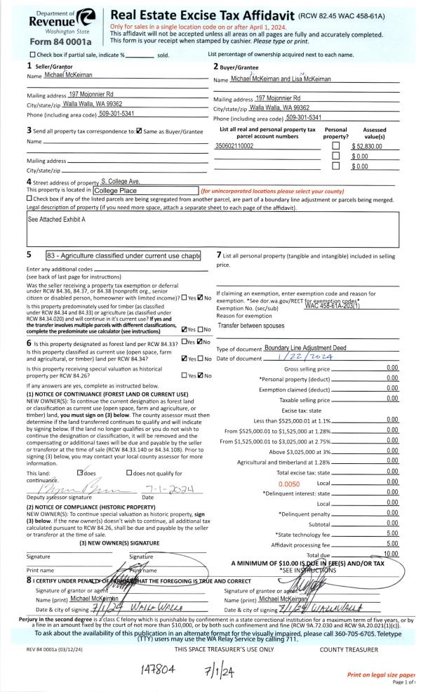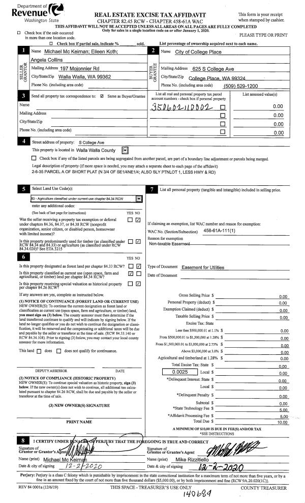 | 5 | 03/04/2022 | EASE | EASEMENT | MCKEIRNAN MICHAEL J | COLLEGE PLACE CITY OF | | | | 143503 | 2022-01900 |