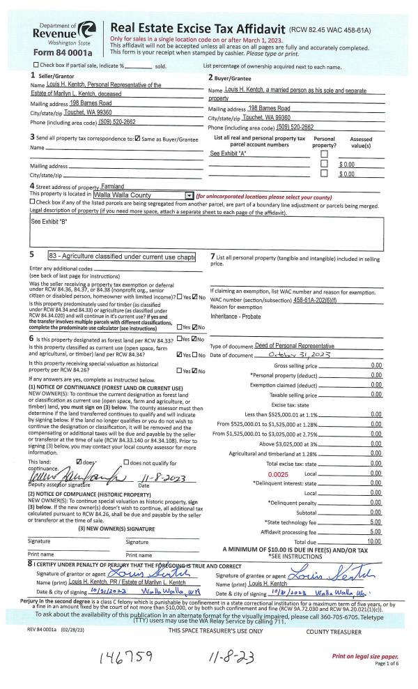 | 1 | 11/08/2023 | DPR | DEED OF PERSONAL REPRESENTATIVE | KENTCH MARILYN | KENTCH LOUIS H | | | | 146759 | 2023-06564 |