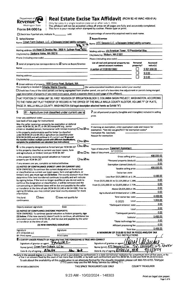 | 1 | 10/15/2024 | BARGAIN & | BARGAIN & SALE DEED | CROWN FARM OUTBACK LLC | FRANK TIEGS LLC | | 19-PARCELS | $126,370,527.00 | 148371 | 2024-05982 |