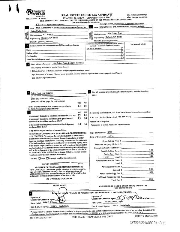 | 1 | 12/31/2014 | SWD | STATUTORY WARRANTY DEED | | RAWLINS MITCHELL & JENNIFER | | | | 127205 | 2014-09506 |