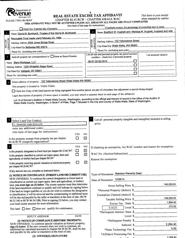| Mailing Address: | 122 YELLOWSTONE ST WALLA WALLA, WA 99362 | % Ownership: | 100.0000000000% |