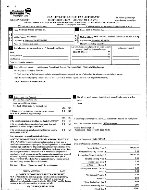 | 4 | 11/26/2014 | TRUSTEES D | TRUSTEE'S DEED | FOWLER JAMES & TAMMY | BANK OF AMERICA | | | $200,250.00 | 127027 | 2014-08645 |