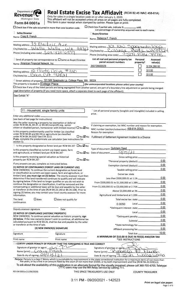 | Mailing Address: | 101 NW SPAGNUOLO LOOP COLLEGE PLACE, WA 99324 | % Ownership: | 100.0000000000% |