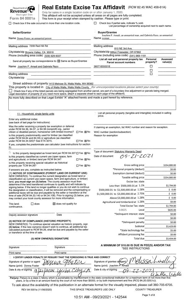 | Mailing Address: | GABRIELA RAZO 1413 MELROSE ST WALLA WALLA, WA 99362 | % Ownership: | 100.0000000000% |