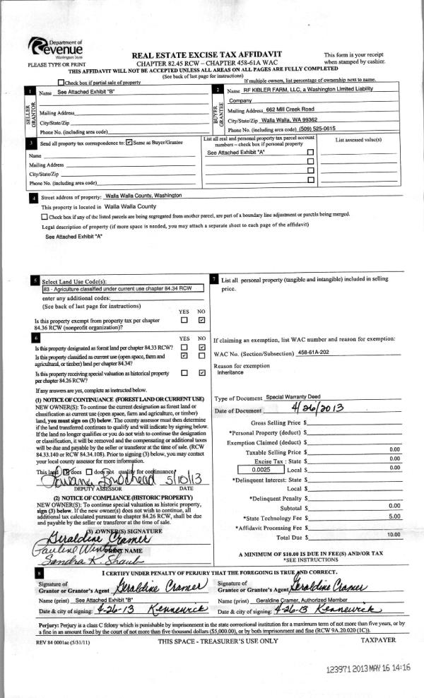 | Name: | RF KIBLER FARM LLC | Owner ID: | 52603 |