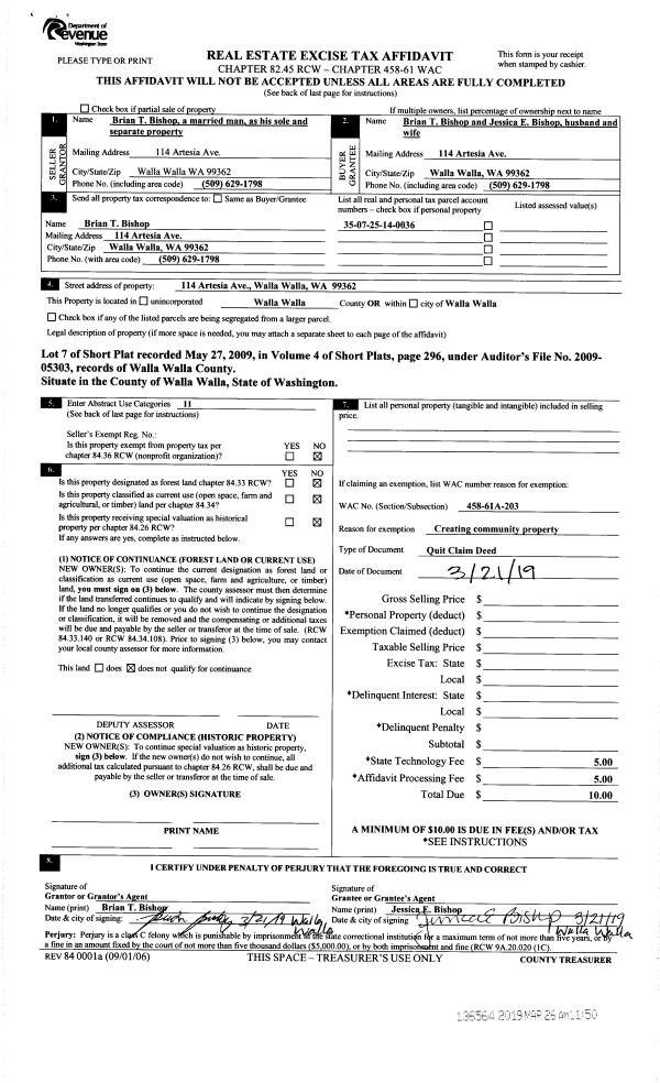 | Mailing Address: | 114 ARTESIA AVE WALLA WALLA, WA 99362 | % Ownership: | 100.0000000000% |