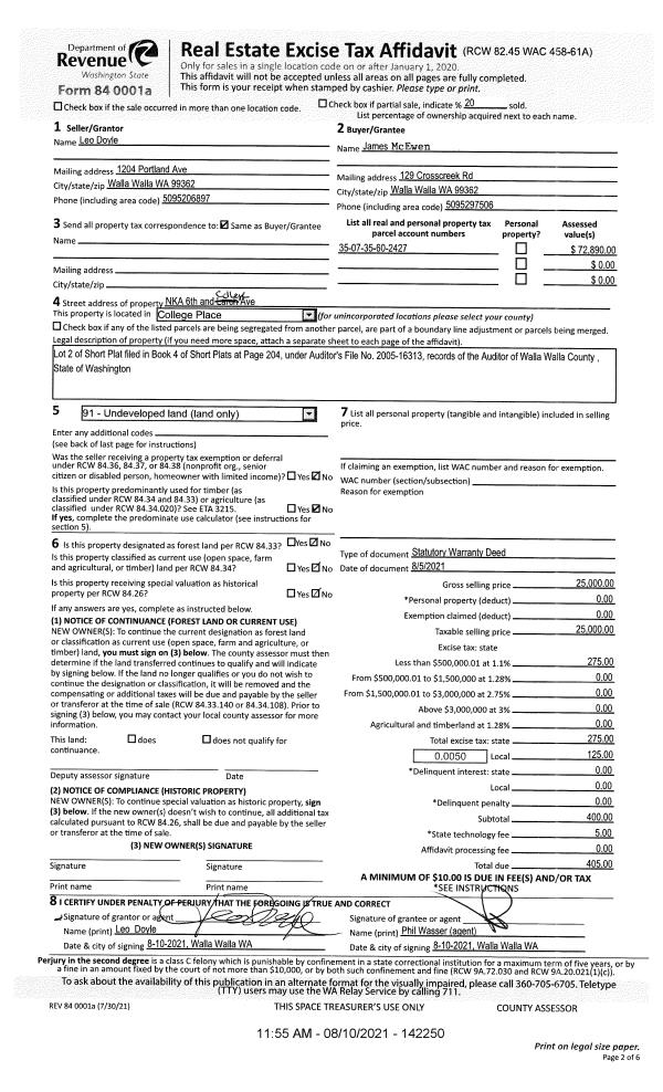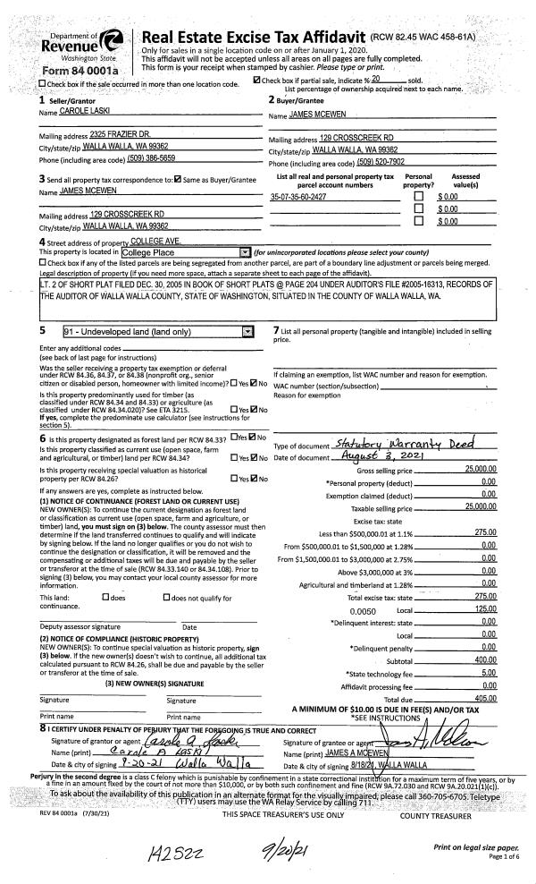 | 2 | 09/20/2021 | SWD | STATUTORY WARRANTY DEED | LASKI ROBERT L | MCEWEN JAMES ET AL | | | $25,000.00 | 142522 | 2021-11549 |