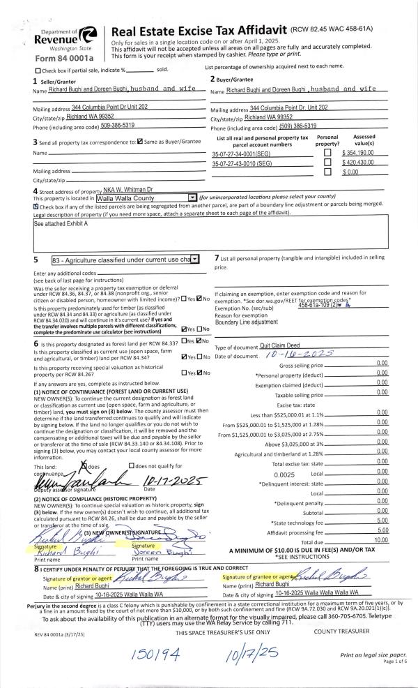 | Mailing Address: | 334 COLUMBIA POINT DR UNIT 202 RICHLAND, WA 99352 | % Ownership: | 100.0000000000% |