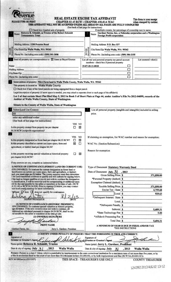 | Mailing Address: | 1810 BELAIR AVE WALLA WALLA, WA 99362 | % Ownership: | 100.0000000000% |
