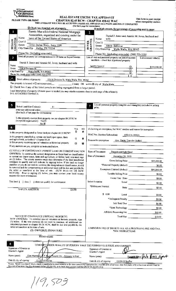 | 2 | 12/23/2010 | WARRANTY D | WARRANTY DEED | FEDERAL NATIONAL MORTGAGE ASSOCIATION | JONES DANIEL J & AMMIE M | | | $95,000.00 | 119503 | 2010-10678 |
