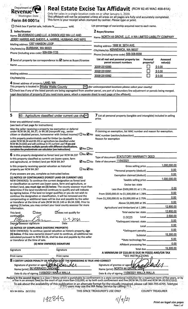 | 1 | 11/09/2021 | SWD | STATUTORY WARRANTY DEED | HARRIS JERRY & SHERYL A | NORTH 44 GROVE LLC | | 3-PARCELS | $1,000,000.00 | 142845 | 2021-13436 |