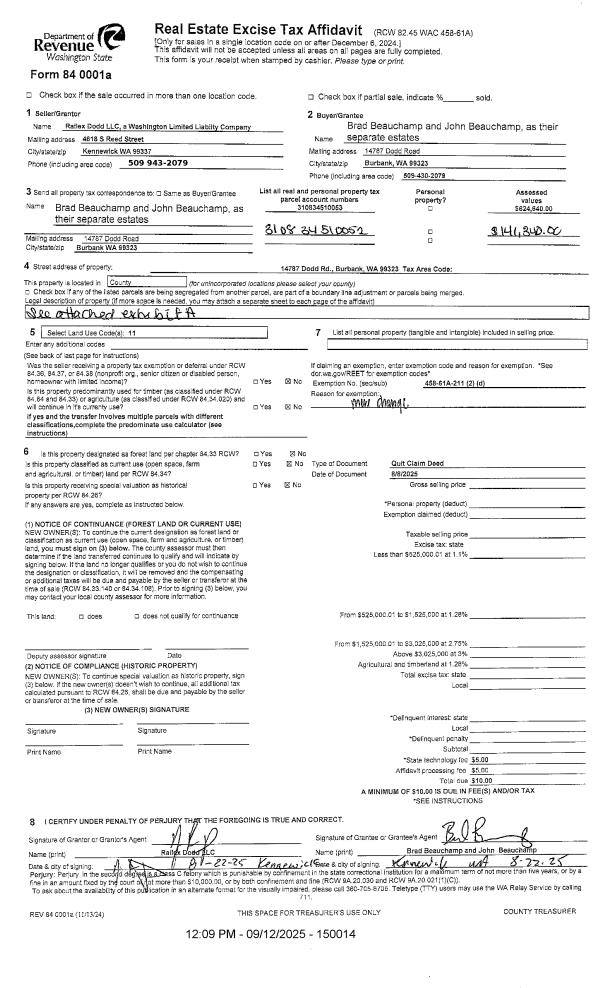 | 2 | 09/12/2025 | QCD | QUIT CLAIM DEED | RAILEX DODD LLC | BEAUCHAMP BRAD & JOHN BEAUCHAMP | | | | 150014 | 2025-05533 |