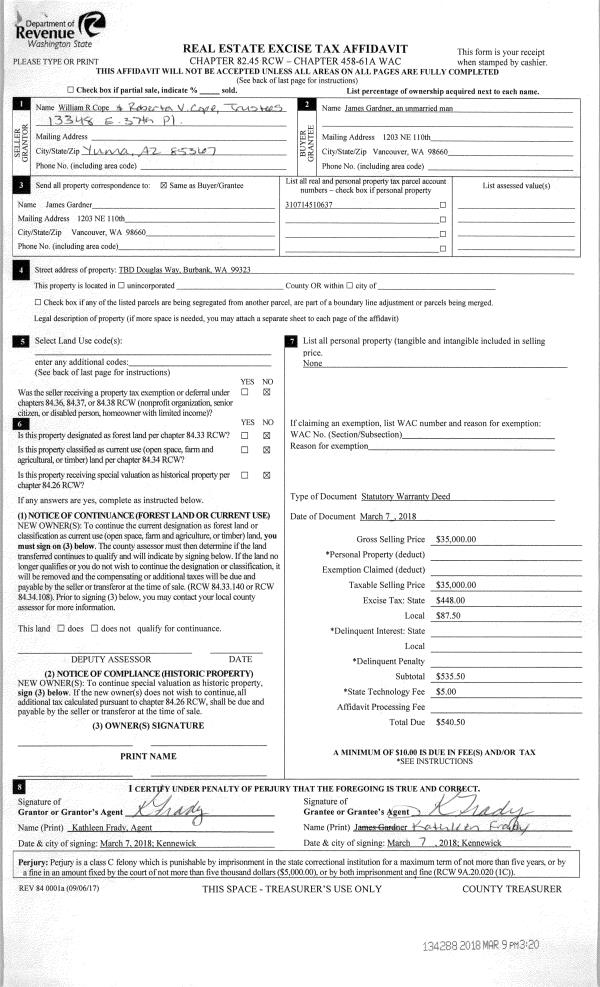 | 2 | 03/09/2018 | SWD | STATUTORY WARRANTY DEED | COPE WILLIAM R & ROBERTA V TRUSTEES OF THE | GARDNER JAMES P | | | $35,000.00 | 134288 | 2018-01888 |