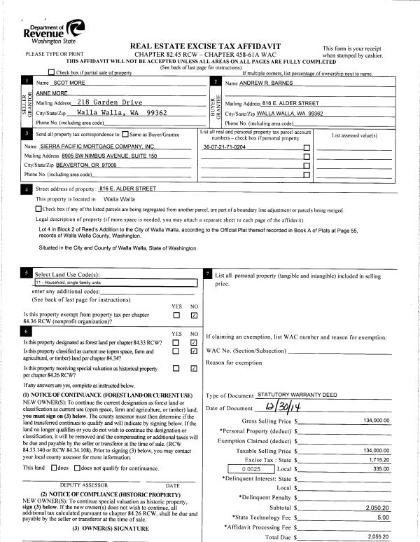 | 1 | 12/30/2014 | SWD | STATUTORY WARRANTY DEED | MORE SCOT & ANNE | BARNES ANDREW R | | | $134,000.00 | 127201 | 2014-09497 |