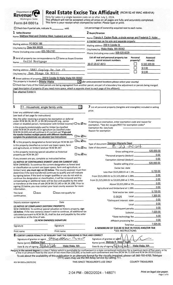 | 2 | 08/22/2024 | SWD | STATUTORY WARRANTY DEED | WEST MATTHEW & CHRISTINE | EACKER-RUDE FRANCIS A | | | $520,000.00 | 148071 | 2024-04698 |