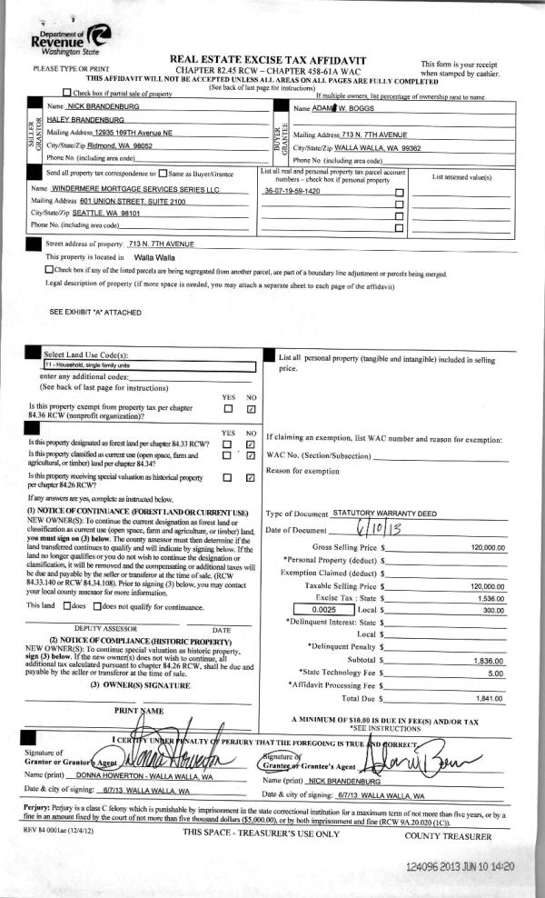 | 3 | 06/10/2013 | WARRANTY D | WARRANTY DEED | BRANDENBURG, NICK & HALEY | BOGGS, ADAM W | | | $120,000.00 | 124096 | 2013-05840 |