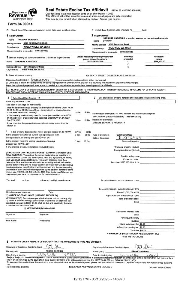 | 1 | 06/13/2023 | QCD | QUIT CLAIM DEED | SANDERS WILLIAM | KAPOCIAS SARAH M | | | | 145970 | 2023-03253 |