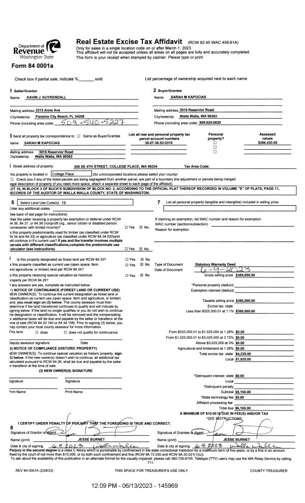 | 2 | 06/13/2023 | SWD | STATUTORY WARRANTY DEED | KUYKENDALL KAVIN J | KAPOCIAS SARAH M | | | $385,000.00 | 145969 | 2023-03251 |