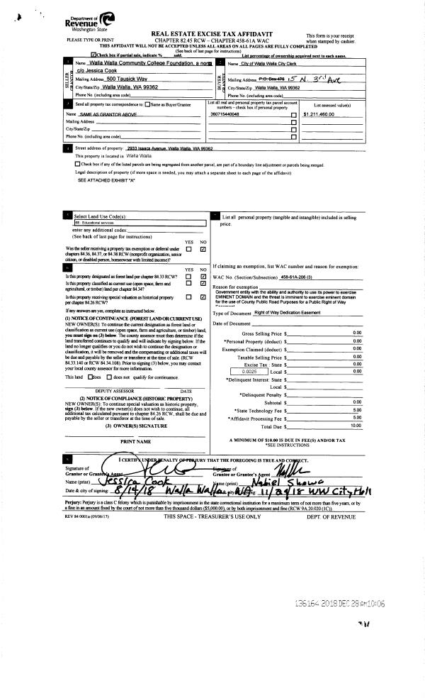 | 3 | 12/28/2018 | EASE | EASEMENT | WALLA WALLA COMMUNITY | WALLA WALLA CITY OF | | | | 136164 | 2018-10655 |